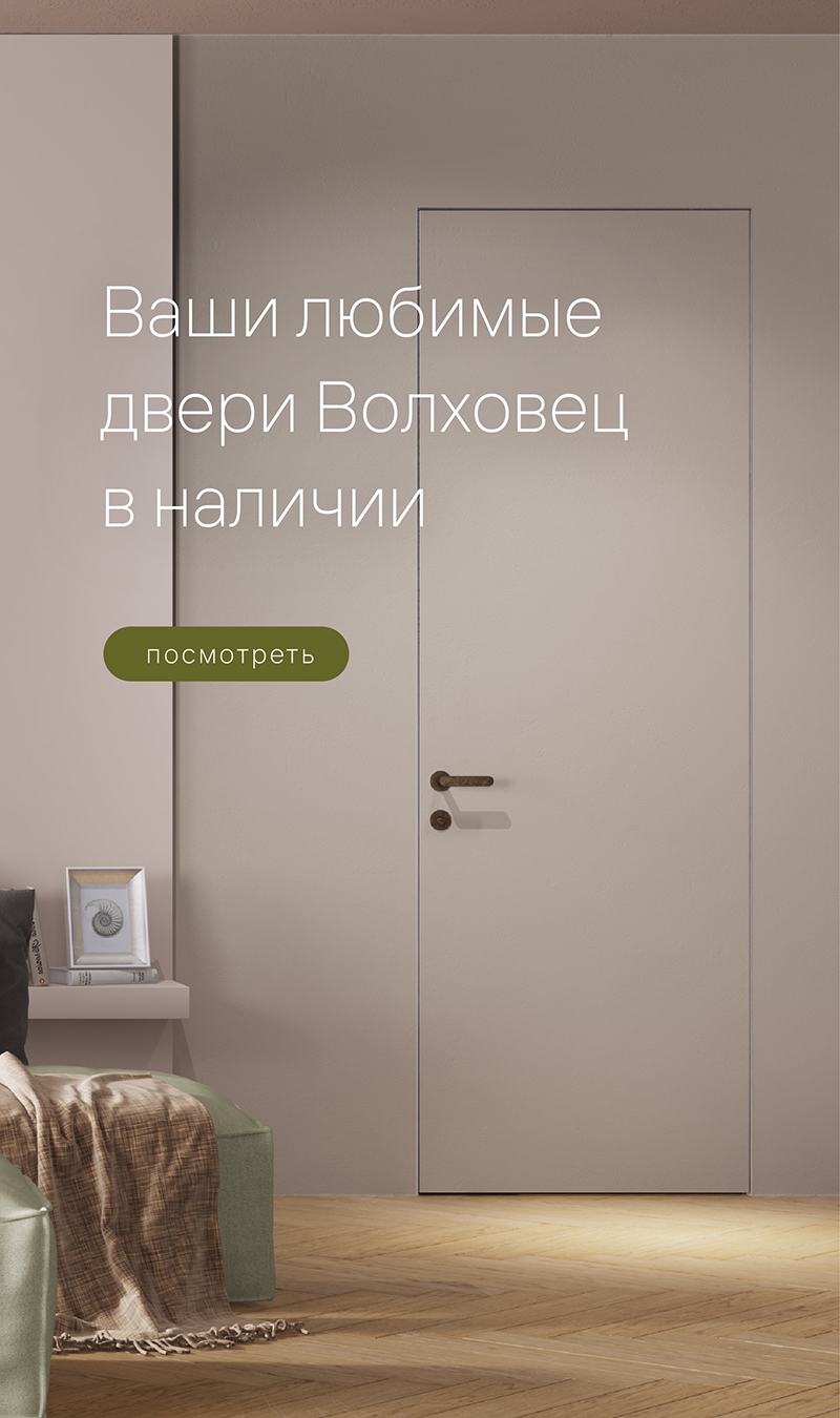 Дверь Волховец — полноценный элемент декора. Но ещё мы предлагаем комплексные интерьерные решения — стеновые панели, алюминиевые перегородки и мебель. Все наши изделия отлично сочетаются в одном интерьере.