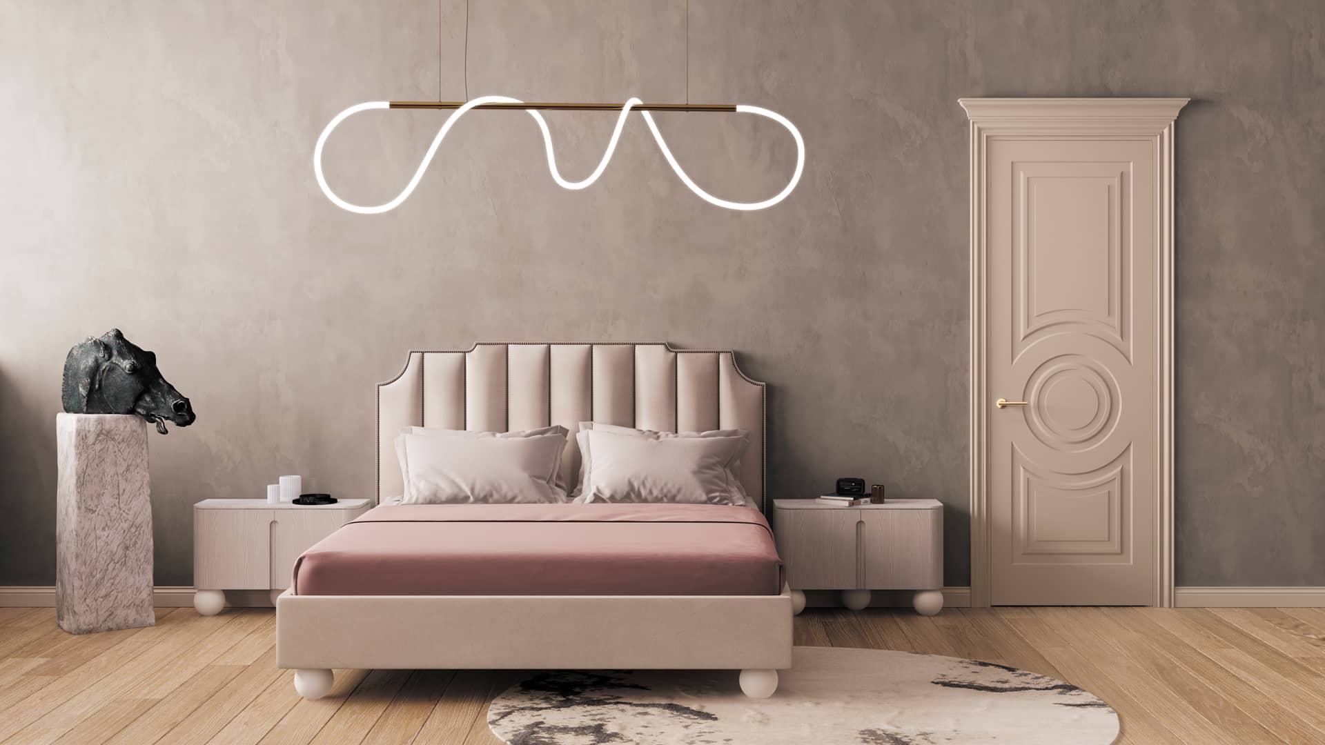 Mascot (в переводе с англ. «талисман») — классическая коллекция с мягкими и элегантными элементами на полотне. Объёмный круг, украшающий одну из форм, символизирует объединение пространств и становится центральным элементом коллекции. Рисунок на цельной поверхности полотна выполнен с помощью технологии фрезерования.