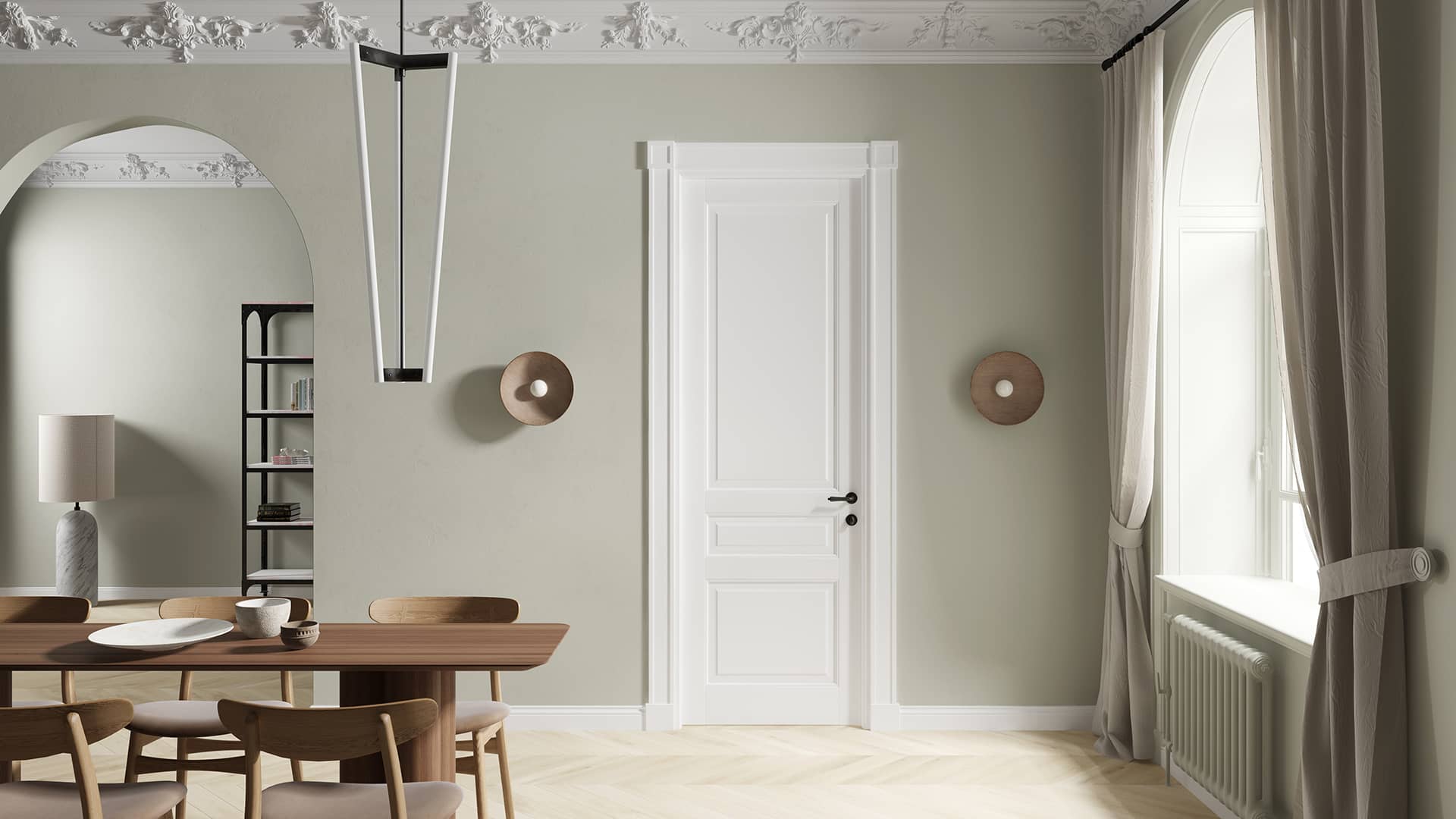 Двери с лаконичными формами и прямыми линиями выполнены в лучших традициях итальянской классики. Резьба на филёнках по массиву бука, уникальные, состаренные вручную отделки и богатая коллекция резных порталов.