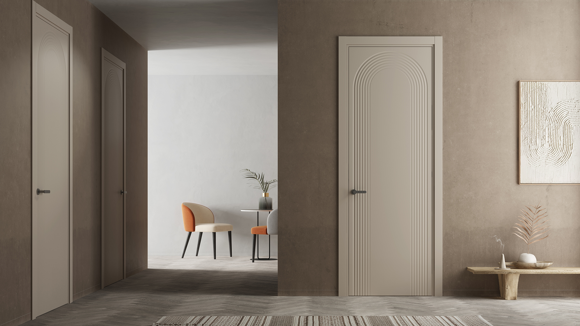 Alba — коллекция выразительных дверей с фрезеровкой, вдохновлённая красотой и магией рассвета солнца. Плавные линии, мягкие формы фрезеровки, светлые оттенки матовой эмали наполняют пространство лёгкостью и воздухом, позволяя прочувствовать свежесть нового дня.