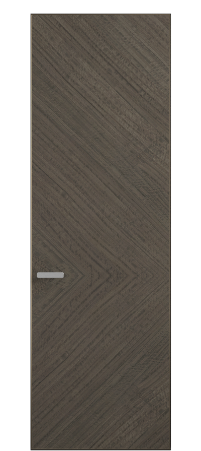 Полотно Rift в скрытом алюминиевом коробе становится полноценным элементом декора. В коллекции представлено 9 моделей дверей в высоте до 3 метров. Рисунок раскладки шпона варьируется от простого до сложного. «Рубашка» для каждого полотна подбирается вручную по цвету, текстуре и фактуре.