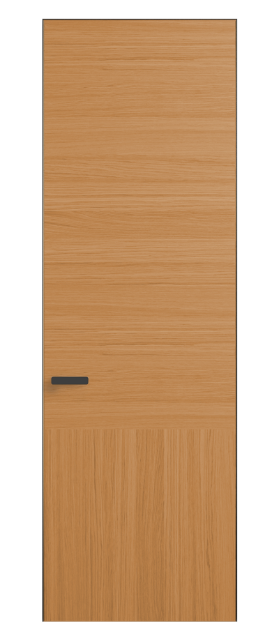 Полотно Rift в скрытом алюминиевом коробе становится полноценным элементом декора. В коллекции представлено 9 моделей дверей в высоте до 3 метров. Рисунок раскладки шпона варьируется от простого до сложного. «Рубашка» для каждого полотна подбирается вручную по цвету, текстуре и фактуре.